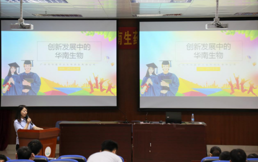 2017年5月24日上午,廣州市華南農大生物藥品有限公司(下稱“華南生物”)在廣州華南農業大學獸醫學院開展了2017年“華南生藥”研究生獎學金頒獎典禮,同時進行了“創新中的華南生物及就業指導”課程分享。