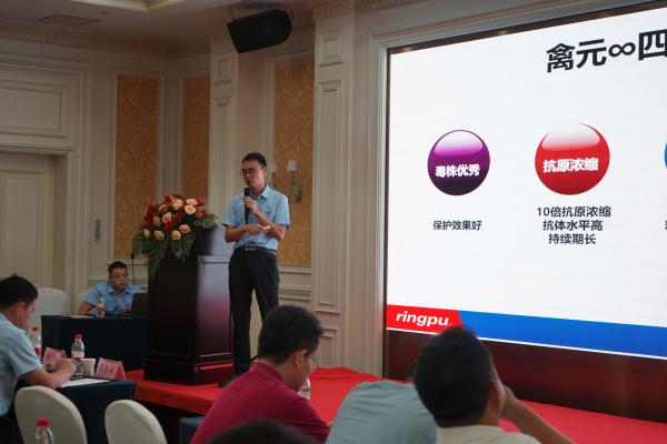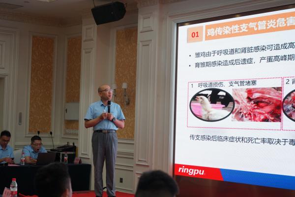 瑞普生物產(chǎn)品線副總裁尤永君做“家禽常見疫病的流行動(dòng)態(tài)及防控策略”主題報(bào)告。尤總對當(dāng)前危害家禽業(yè)比較重大的疾病如傳染性支氣管炎、傳染性鼻炎、傳染性貧血、支原體、禽流感等進(jìn)行了詳細(xì)的介紹,并有針對性的提出了防控建議,對大家科學(xué)養(yǎng)殖提供了參考。
