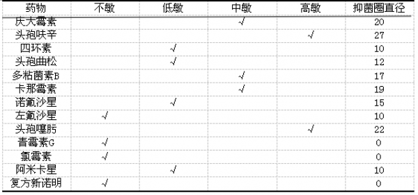 表1 藥敏試驗結果