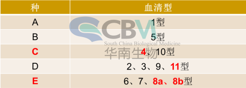 Ⅰ群:分為5個種(A、B、C、D、E)和12個血清型,能引起包含體肝炎、心包積液和肌胃糜爛等癥;Ⅱ群:火雞出血性腸炎;Ⅲ群:產蛋下降綜合征(EDS)。其中引起水禽致病的主要是I群腺病毒。具體分工如下: