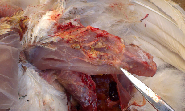 2、注射部位不當或者由于再注射過程中針尖刺到骨頭導致針尖帶鉤,導致注射部位出現嚴重的組織反應,并對禽群造成進一步的傷害 。
