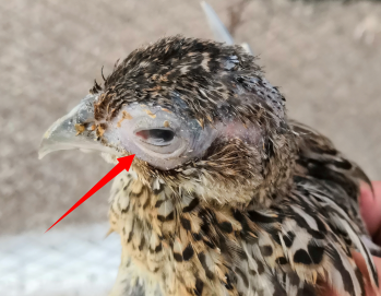 2、鼻孔先流出清液后轉為漿液粘性分泌物,有時打噴嚏。臉部、肉髯腫脹,呼吸困難,口鼻喉有粘液。