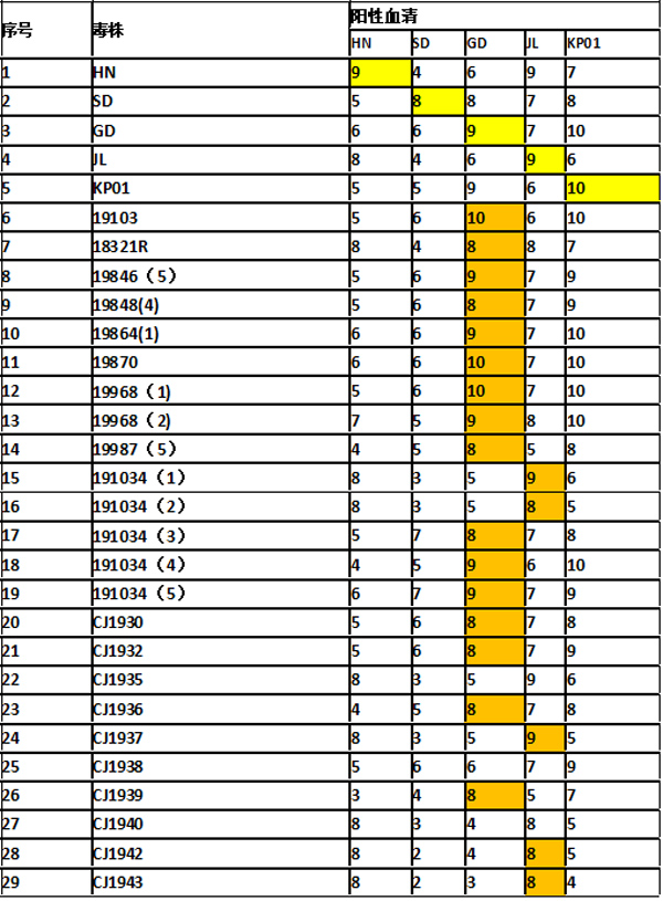 H9N2亞型禽流感h.9.4.2.5分支的流行毒株分為2個抗原群A和B。A群和B群毒株之間的抗原差異大,最大可達27倍。所以候選疫苗株必須同時覆蓋兩個抗原群。華南生物秉承著疫苗高保護力高抗體效價的原則,一直以來走雙毒株的技術路線,如目前的禽流感(H9亞型)滅活疫苗和新城疫、禽流感(H9亞型)二聯滅活疫苗以及新城疫、傳染性支氣管炎、禽流感(H9亞型)三聯滅活疫苗中的H9部分均采用雙毒株(GD+JL)的制作工藝(取代之前的HN株+SD株),緊跟流行病學的變化以實現全面覆蓋和抗原互補的作用。如下圖所示: